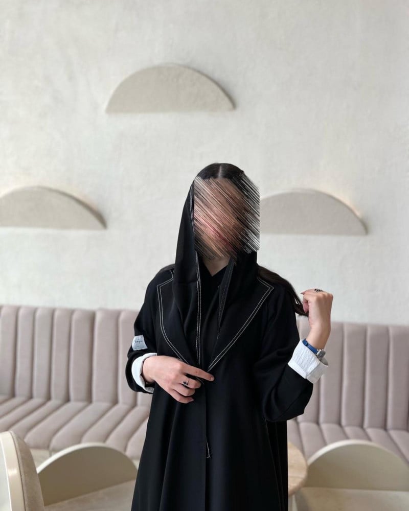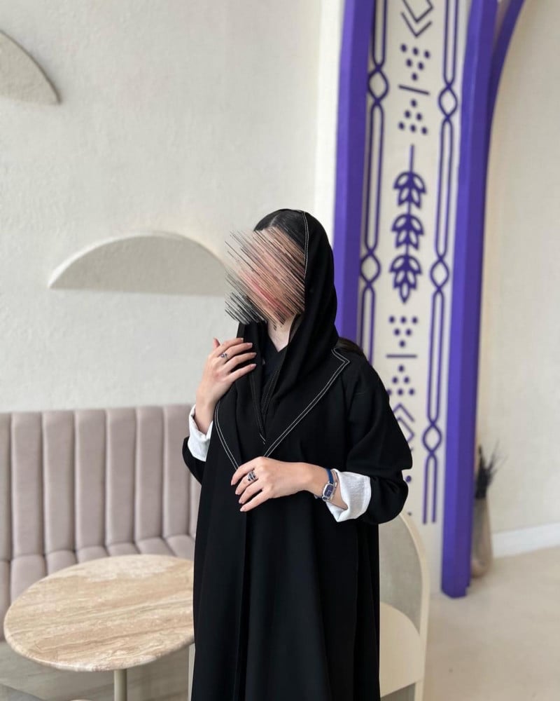 الطرحه اسود قيطان ابيض تشمل العبايه🧷